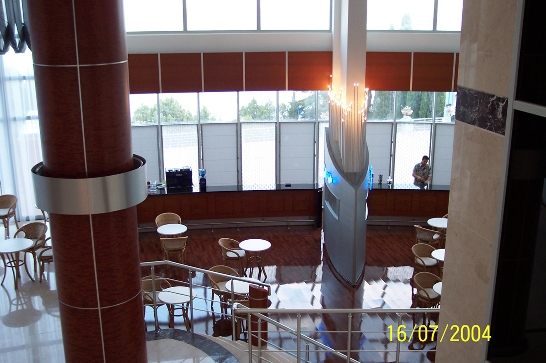 Ukrayna-Kırım’ın Alushta şehrinde, Karadeniz’in en büyük aquapark projesi içerisindeki restoranın tasarlanıp uygulanması işidir. Geniş cam cephe ile içeri alınan günışığı, ahşap duvar kaplamaları ile dengelenmiş, modern ve ferah bir mimari tarz öngörülmüştür. Mevcut kayalıklar, restoran içerisinde korunarak, dekorasyon öğesi olarak ahşap elemanlarla birlikte kullanılmıştır.
